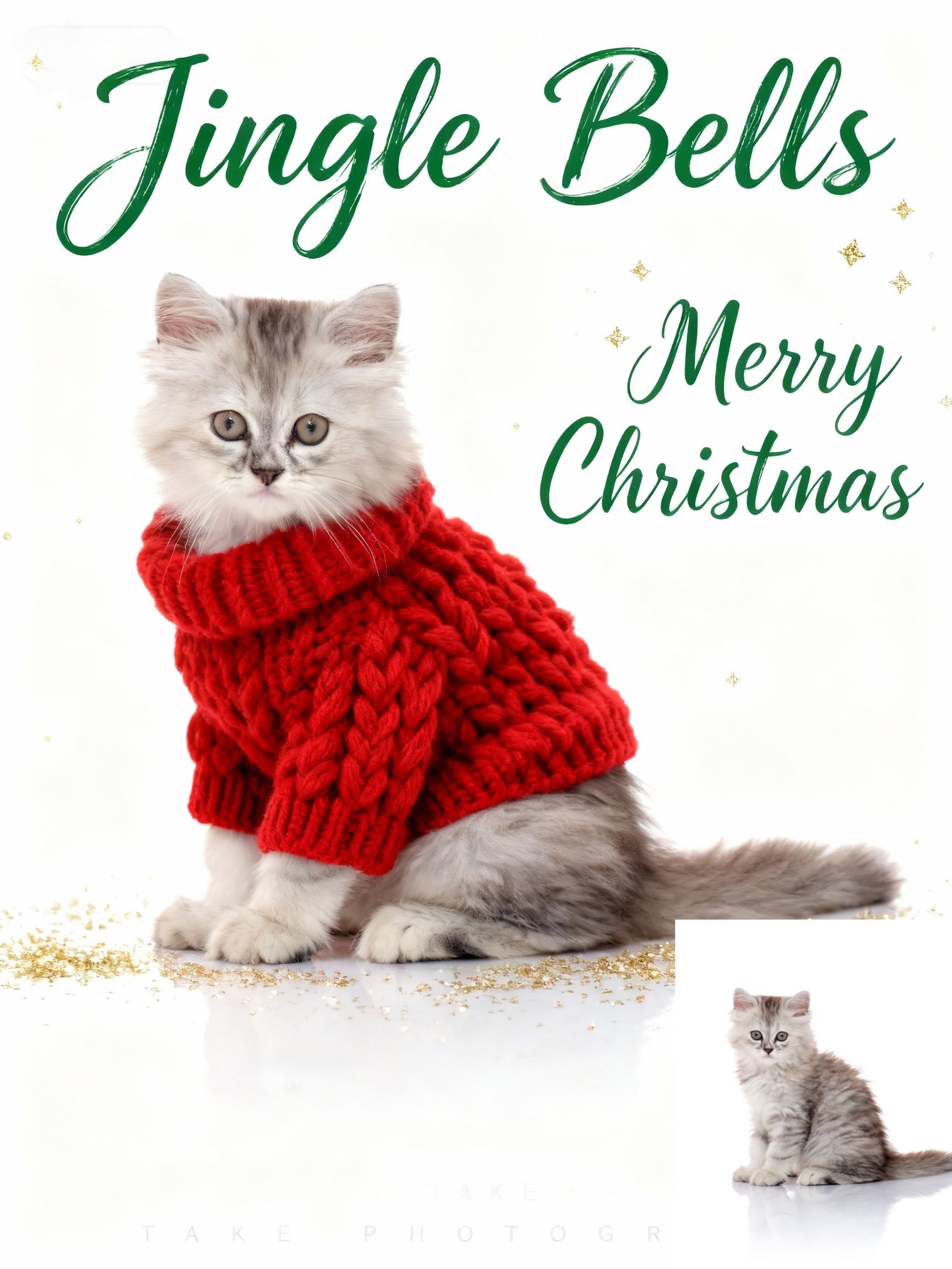 Holiday Sweater Chic Pet Portrait, Pet in Red Knit Jumper Art, Minimalist Christmas