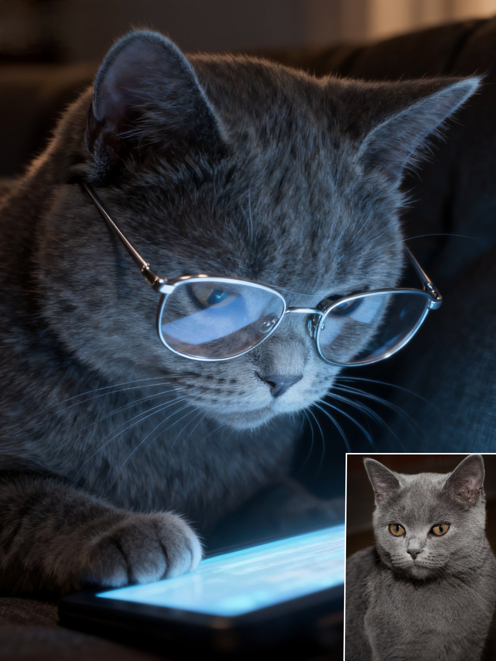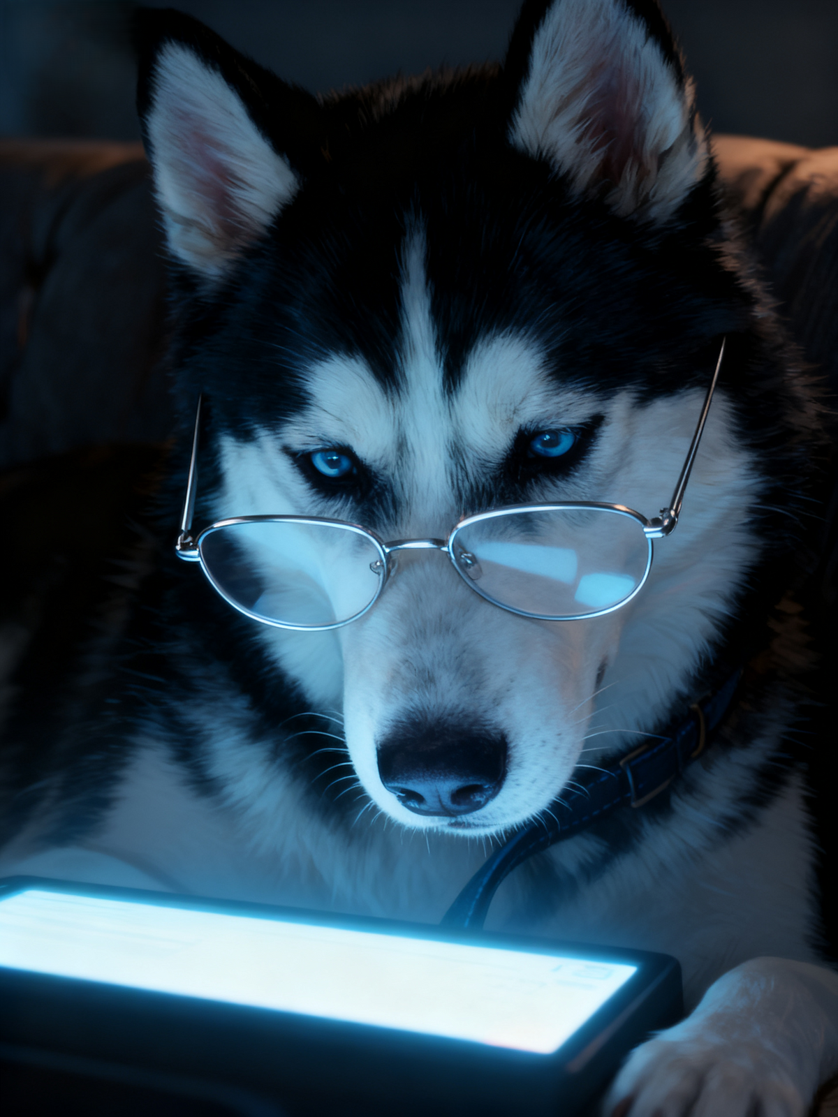 💡 Where Intelligence Meets Illumination: The Digital Scholar. Capture your pet’s most focused and sophisticated side with "The Digital Scholar" portrait. This high-drama piece transforms your companion into a dedicated intellectual, bathed in the cool, captivating glow of a digital screen.