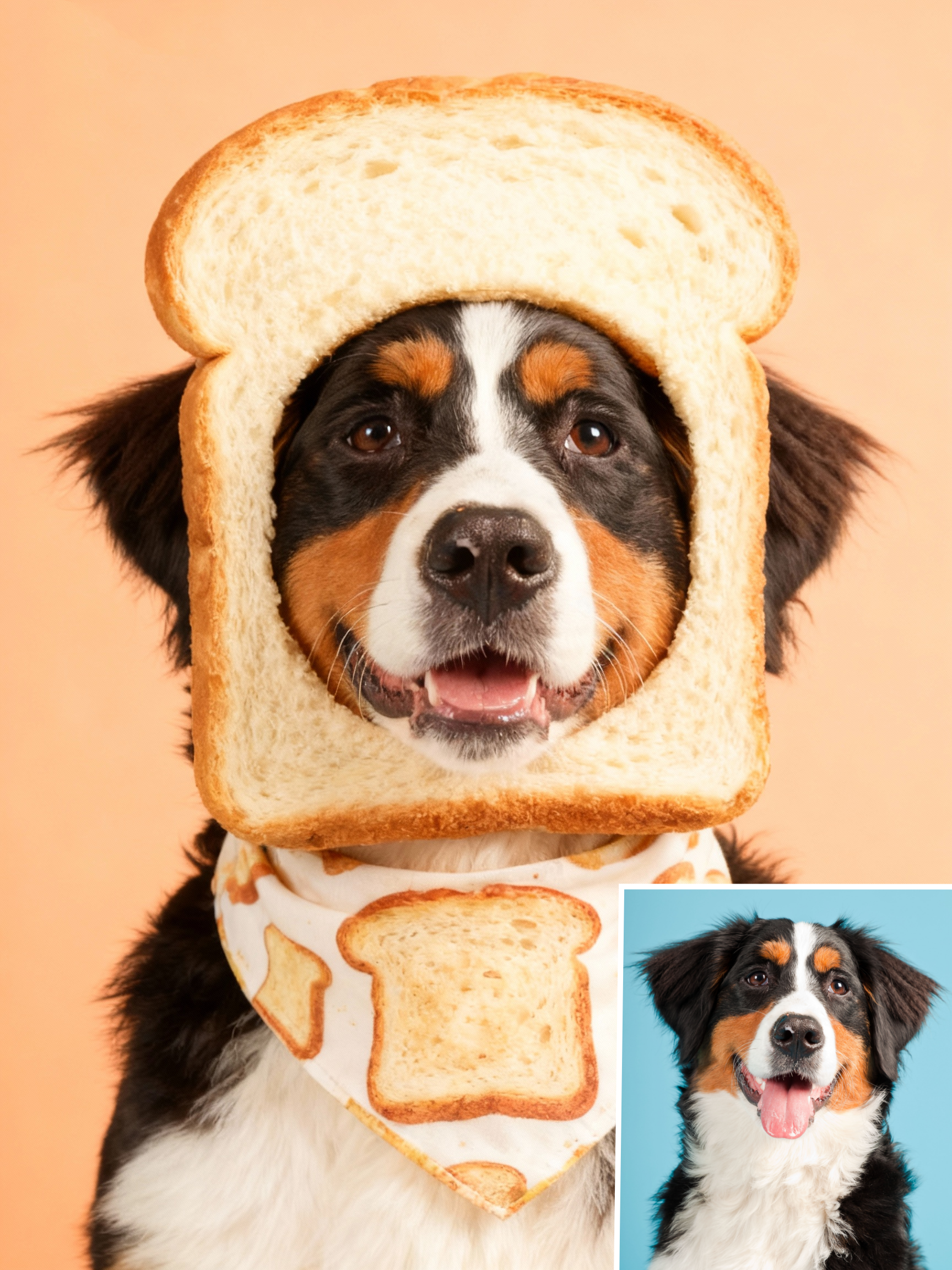 🍞 Is your pet a certified "pure-bread"? This hilarious portrait captures your pet’s adorable face peeking through a classic slice of bread, celebrating their goofy and lovable personality. It's a playful tribute to the four-legged friend who is, without a doubt, the greatest thing since sliced bread.