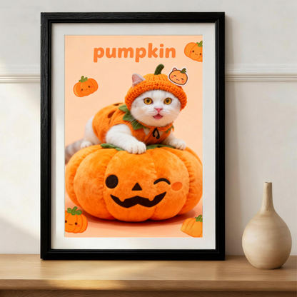 The Cutest Pumpkin Pet Portrait, Custom Halloween Art Gift