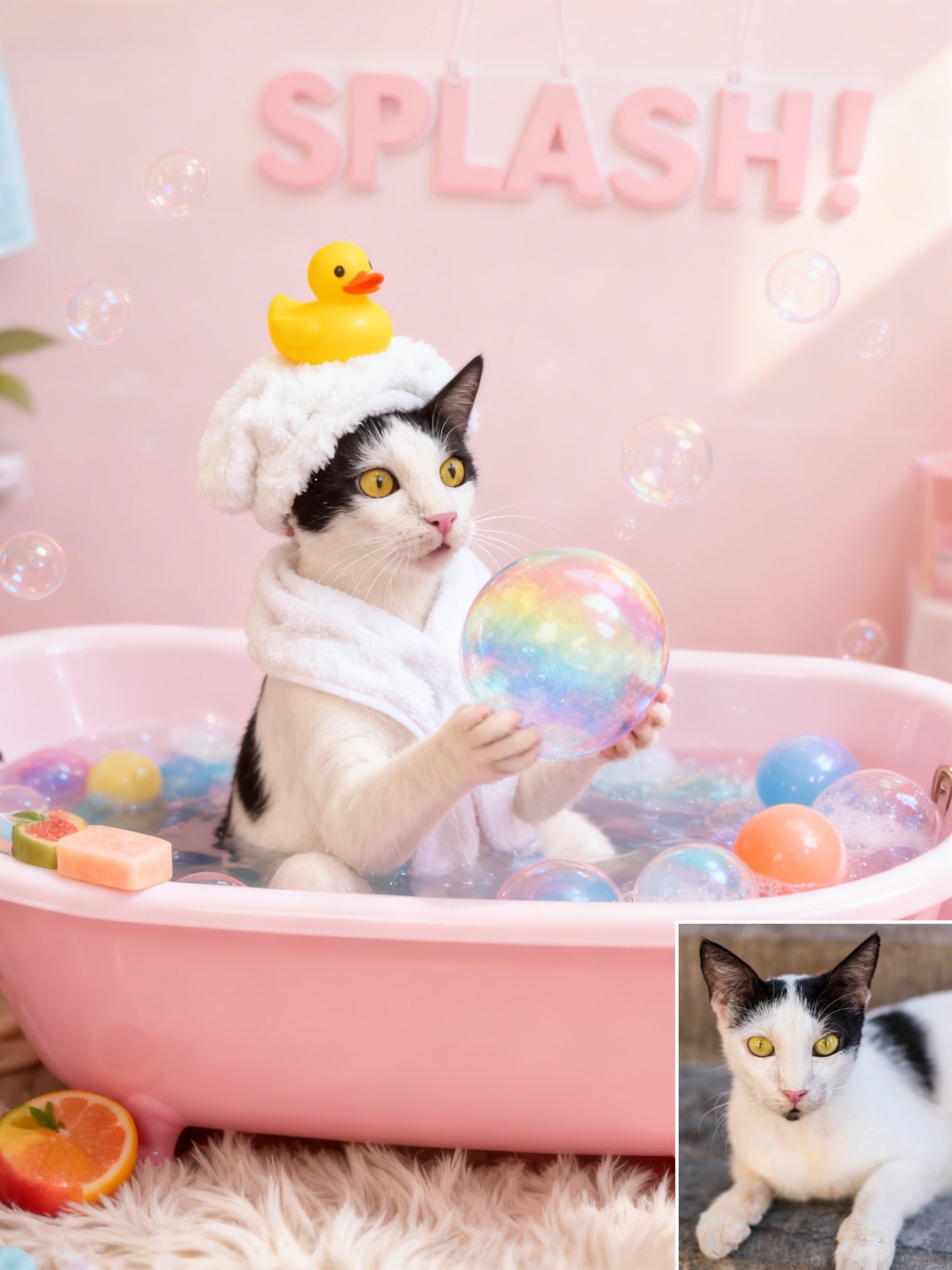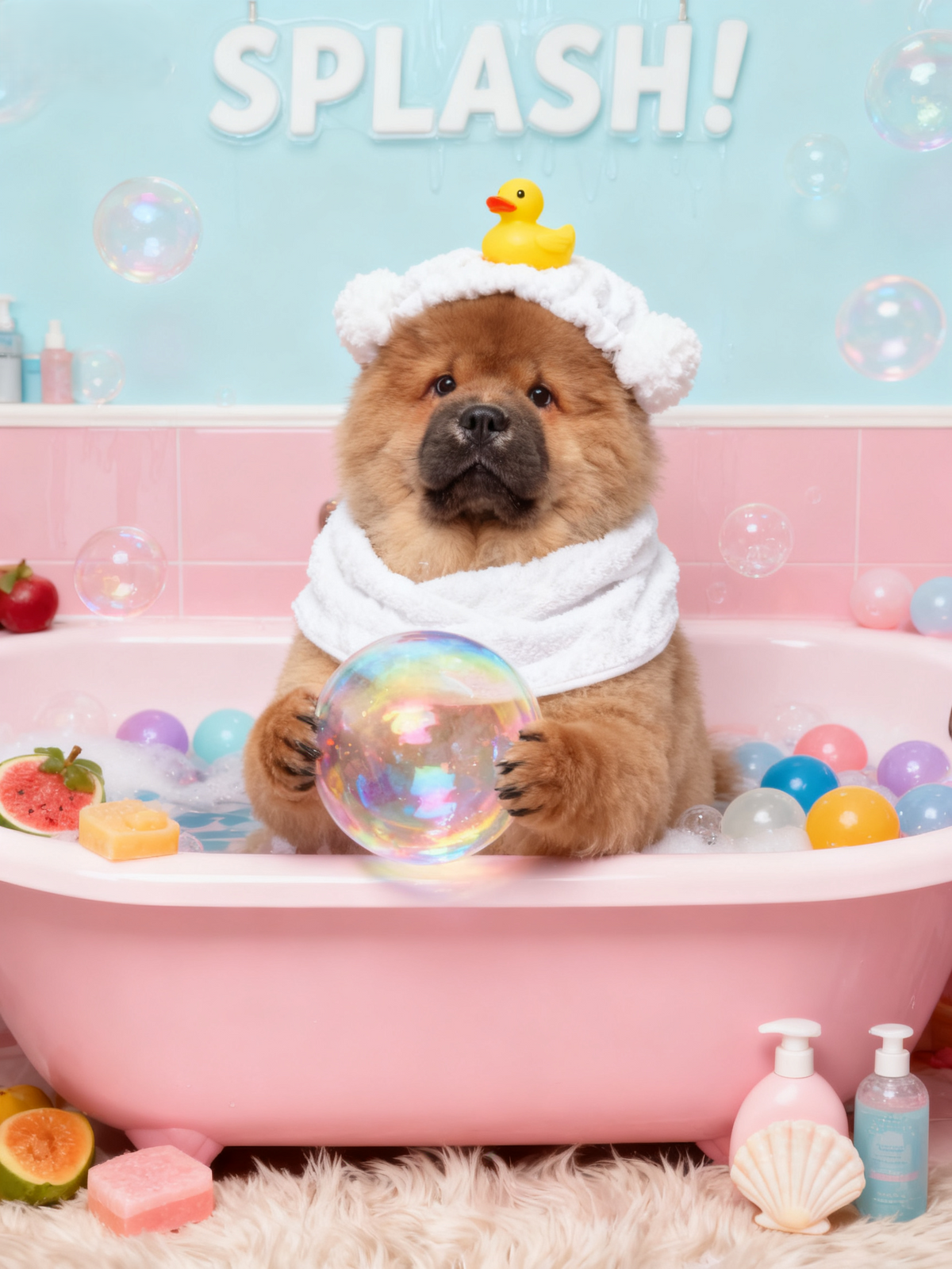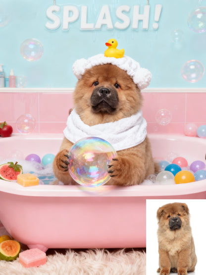 🛁 Relax, Unwind, and SPLASH!  Welcome to the ultimate spa day! This portrait captures your beloved pet in a moment of pure, unadulterated bliss—a luxurious bubble bath fit for royalty. Forget the stress of the day; your pet is here to remind you that life is better in a pink tub.