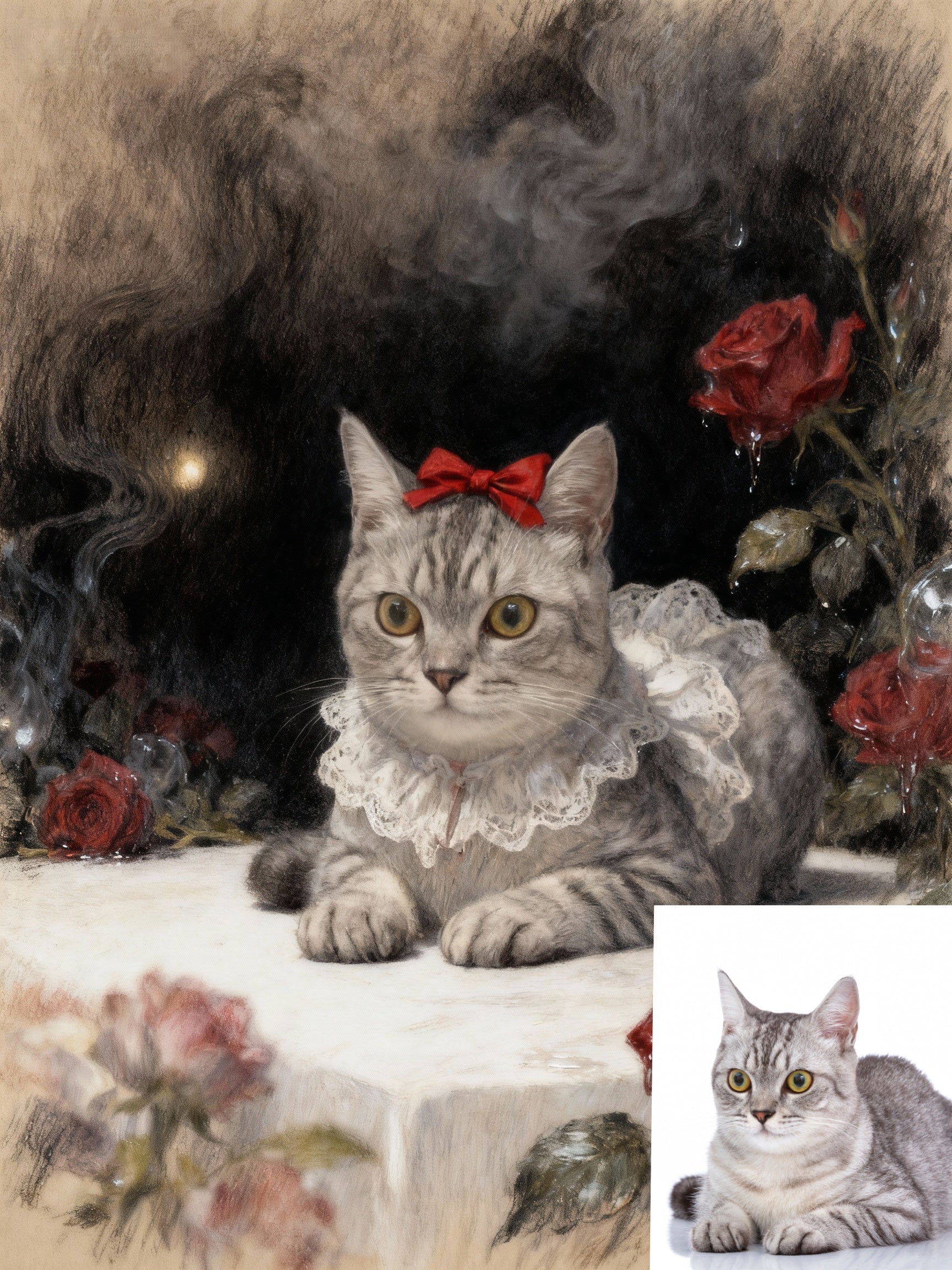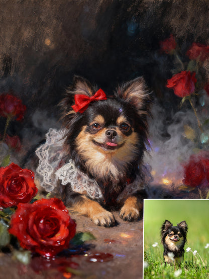 🌹The Art of Opulence: We blend cutting-edge technology with the soulful touch of classical artistry. The result is a museum-quality portrait that captures the depth, texture, and emotional resonance of a genuine oil painting. It’s not just a picture; it's a piece of history, a celebration of your pet's regal presence, and a stunning focal point for any room with a classic or romantic aesthetic.
