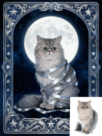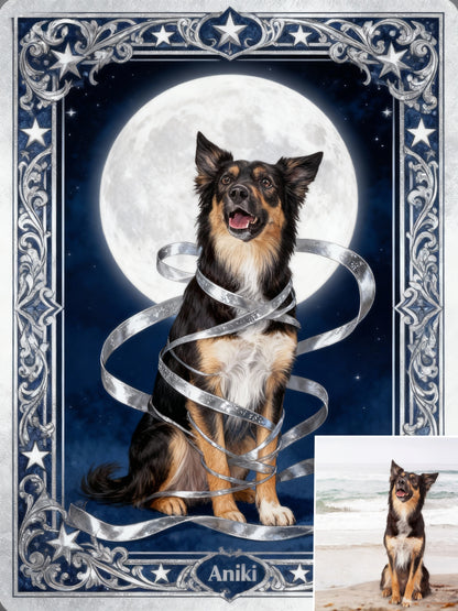 The Star Guardian Pet Portrait | Custom Tarot Card Style Art | Lunar Messenger & Silver Filigree Frame