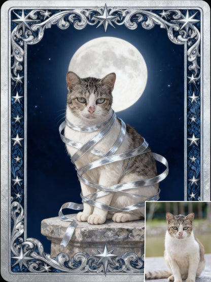 ✨ Where Destiny Meets Devotion. Unveil the mystical side of your beloved companion with "The Star Guardian" portrait. This stunning piece is crafted in the style of a classic, ornate Tarot or playing card, transforming your pet into a powerful figure of fate and magic.